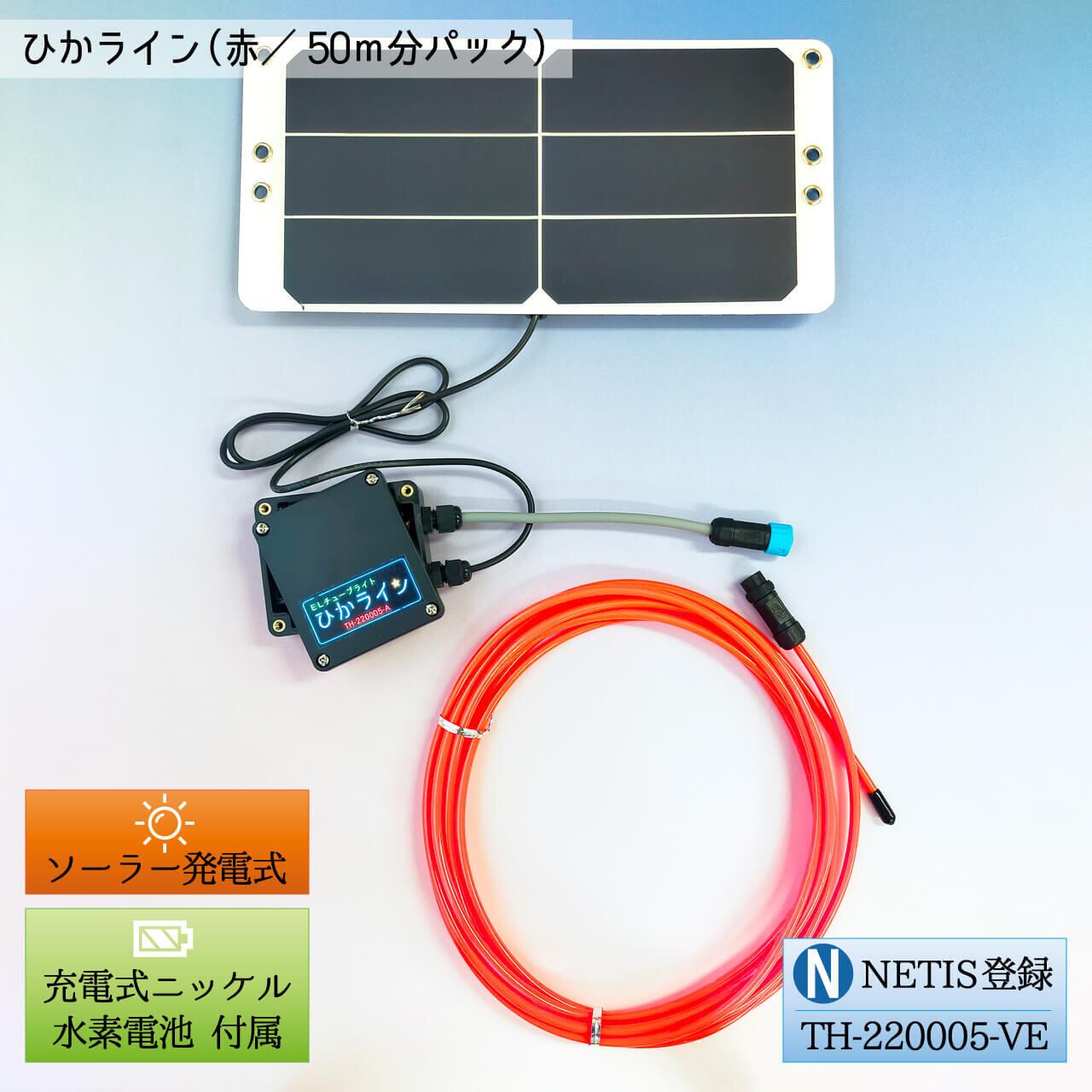 「ひかライン」は特殊な無機ELワイヤを採用。従来の点光源とは異なり、チューブ全体が360度均一に発光するため、どの角度からでも高い視認性を確保します。