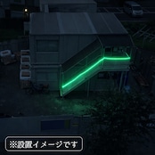 「ひかライン」は特殊な無機ELワイヤを採用。従来の点光源とは異なり、チューブ全体が360度均一に発光するため、どの角度からでも高い視認性を確保します。